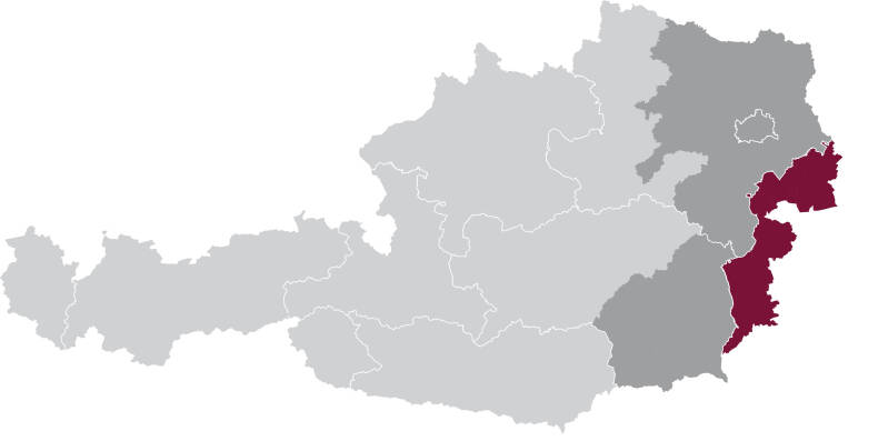 Burgenland (11.904 ha): Eisenberg DAC, Leithaberg DAC, Mittelburgenland DAC, Neusiedlersee DAC, Rosalia DAC en Ruster Ausbruch DAC